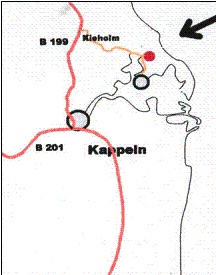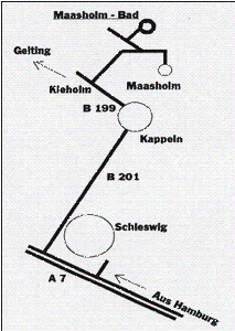 auf der B 203 nach Eckernförde und dann auf der B 203 nach Kappeln. ODER BAB Abfahrt Nr.: 5 Schleswig/Schuby. Dann Richtung Kappeln. In Kappeln nach